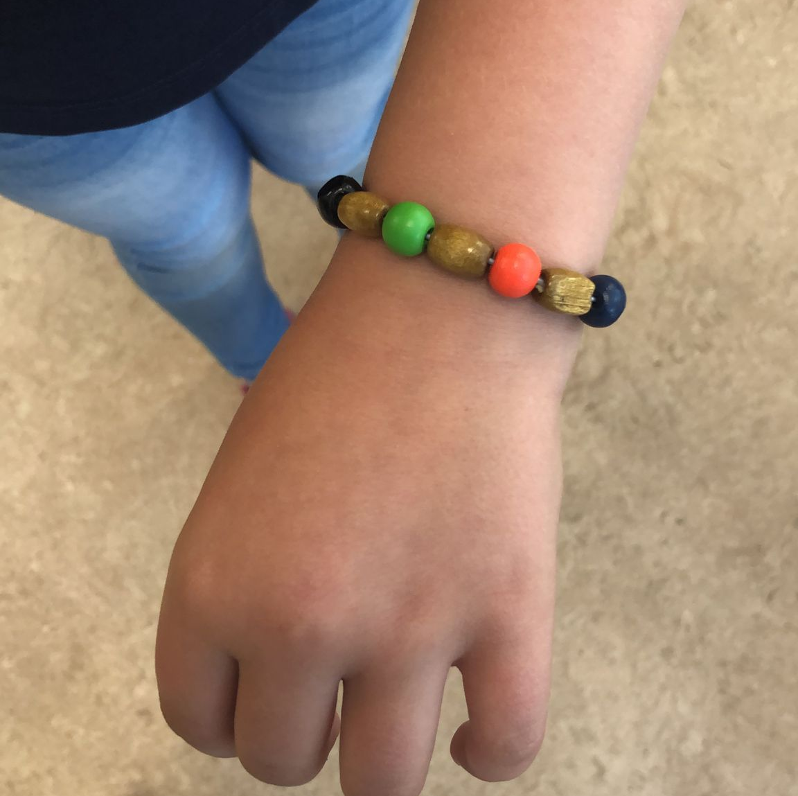 Im Abschlussgottesdienst haben die Schülerinnen und Schüler ein Armband bekommen, das sie mit seinen unterschiedlichen Perlen an die Facetten des Lebens erinnern soll. Da gibt es freudige Momente, goldene Erinnerungen, Aufgaben und Erfolge - aber auch Ängste und Situationen, die eher "dunkel" sind. Als gemeinsames Zeichen soll das Armband Verbundenheit symbolisieren und immer wieder den Fokus auf die vielen Aspekte im Leben richten.