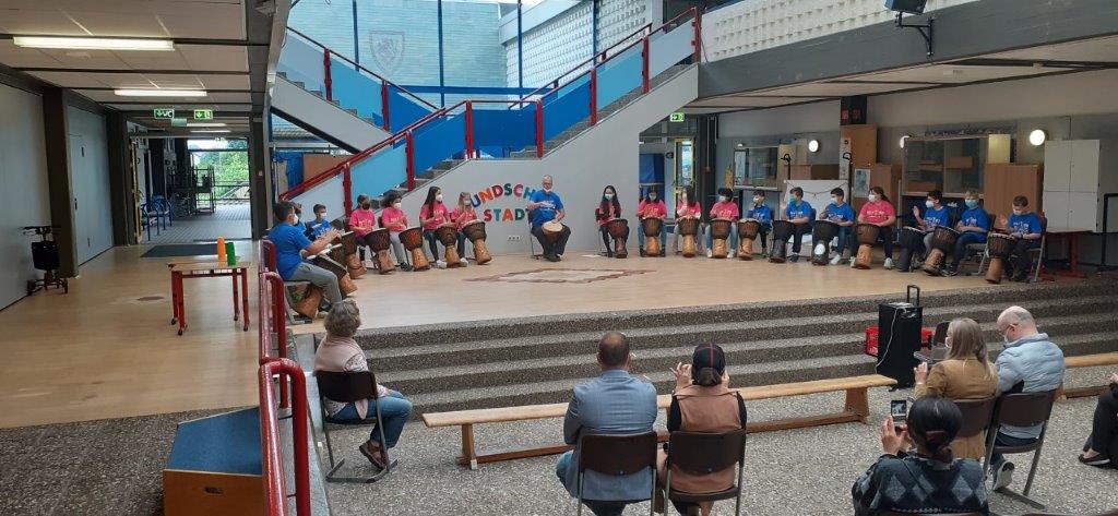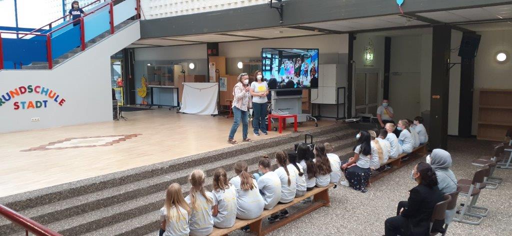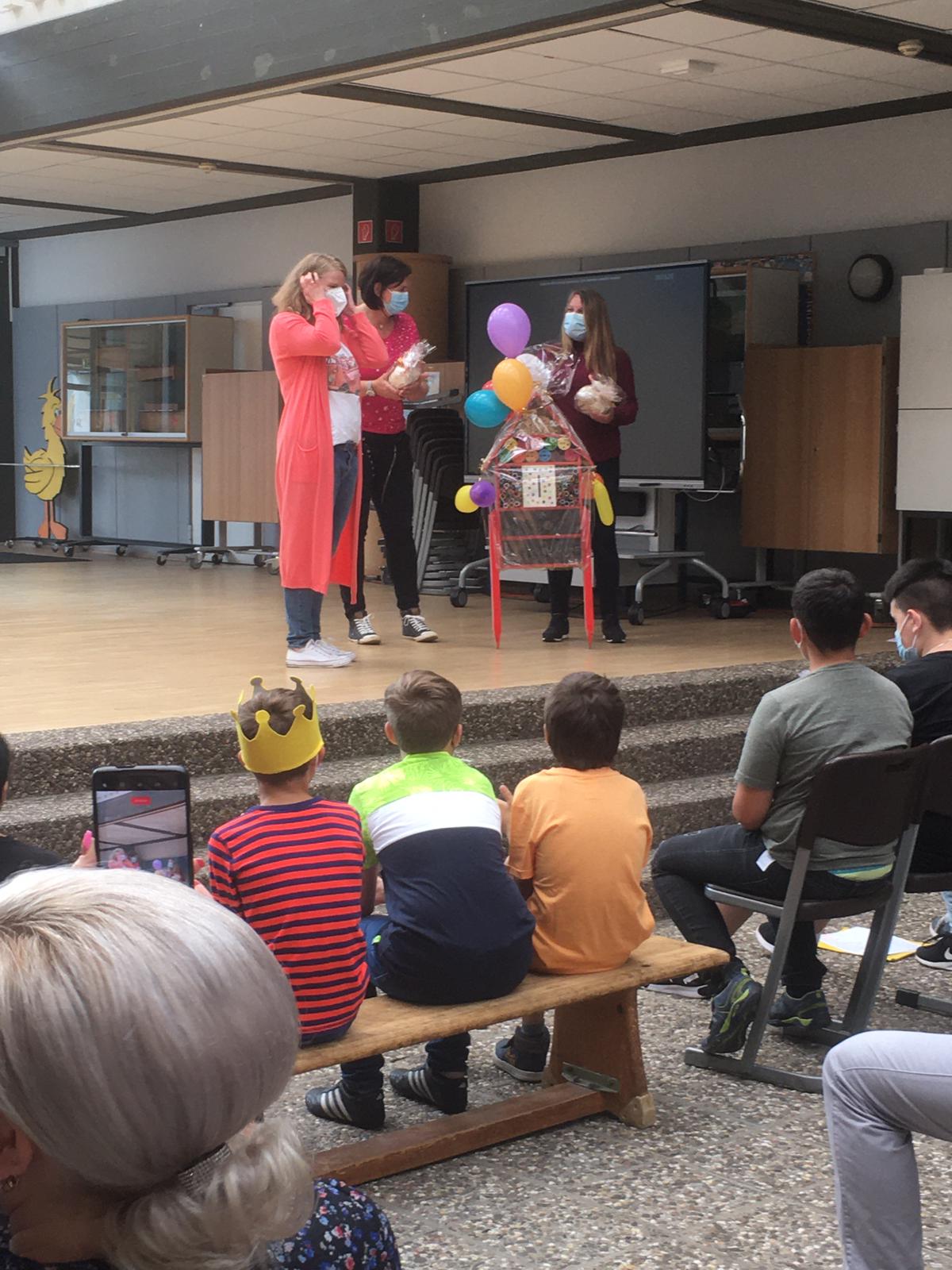 In einer feierlichen Zeremonie wurde jedem Kind das letzte Zeugnis der Grundschule überreicht. Danach hoben die Schulleitung und die Klassenlehrerin jedes Kind in den Mittelpunkt und fassten die vergangenen Schuljahre, die tollen Erlebnisse und die erlangten Fähigkeiten zusammen.
