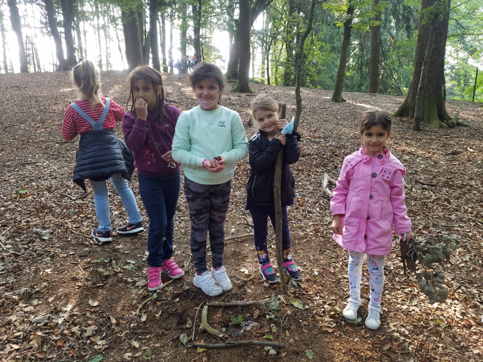 Die Klasse 2c war letzte Woche gemeinsam im Wald und hat Blätter und deren Früchte gesammelt. Aus Ästen und Blättern sind schöne Bauwerke entstanden und einen Baum haben die Kinder auch gepflanzt.