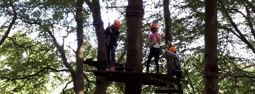 Der Ausflug wurde zum Teil vom Preisgeld des Evonik-Wettbewerbs finanziert. Nach einigen anfänglichen Überwindungs- und Höhenproblemen hatten alle viel Spaß beim Klettern und bei den teilweise rasanten Abfahrten an den freien Seilrutschen.
