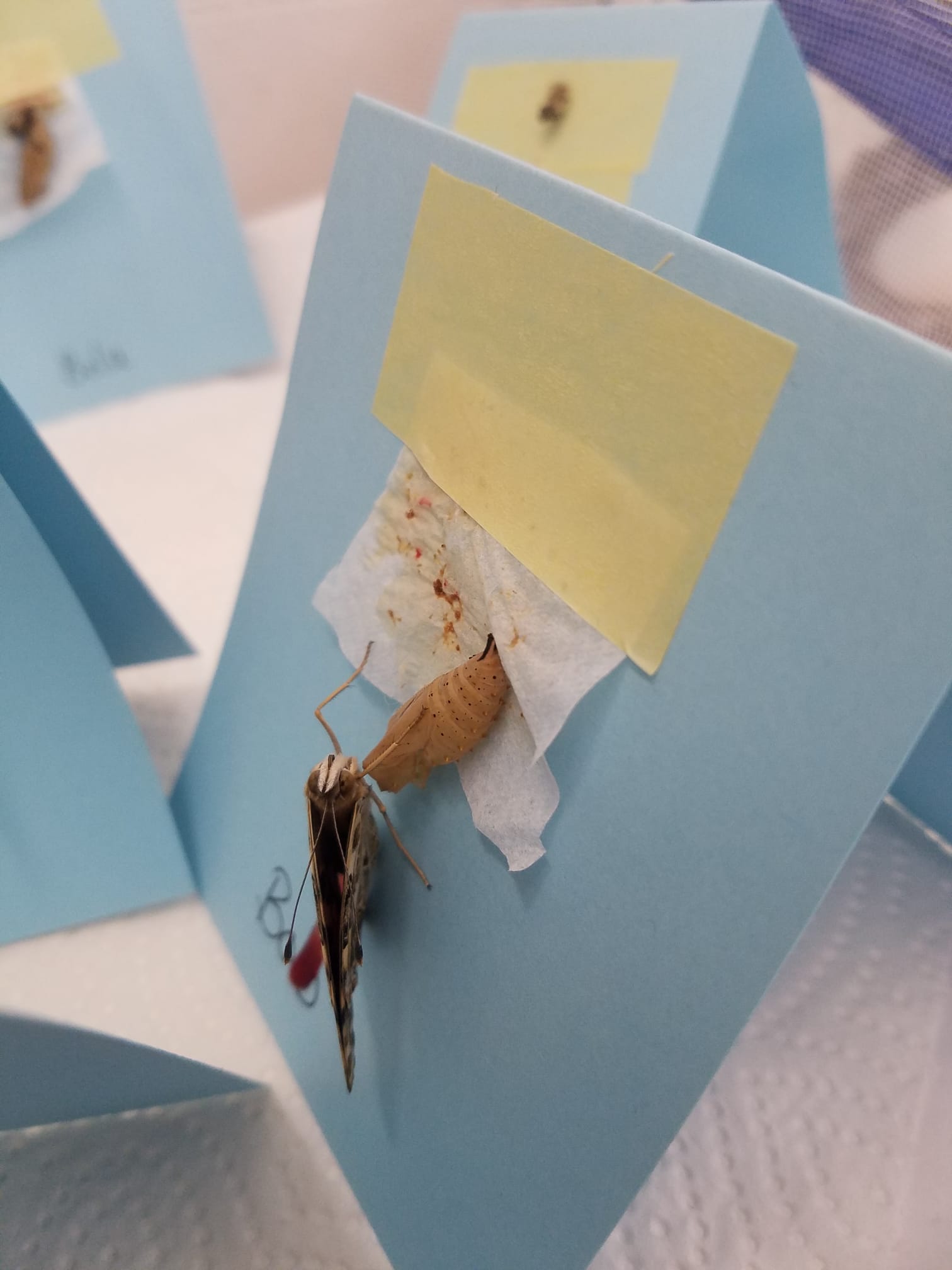 Seit ca. zwei Wochen läuft das Projekt bei uns an der Schule, jetzt sind die ersten Distelfalter