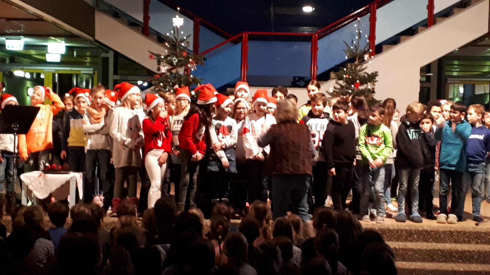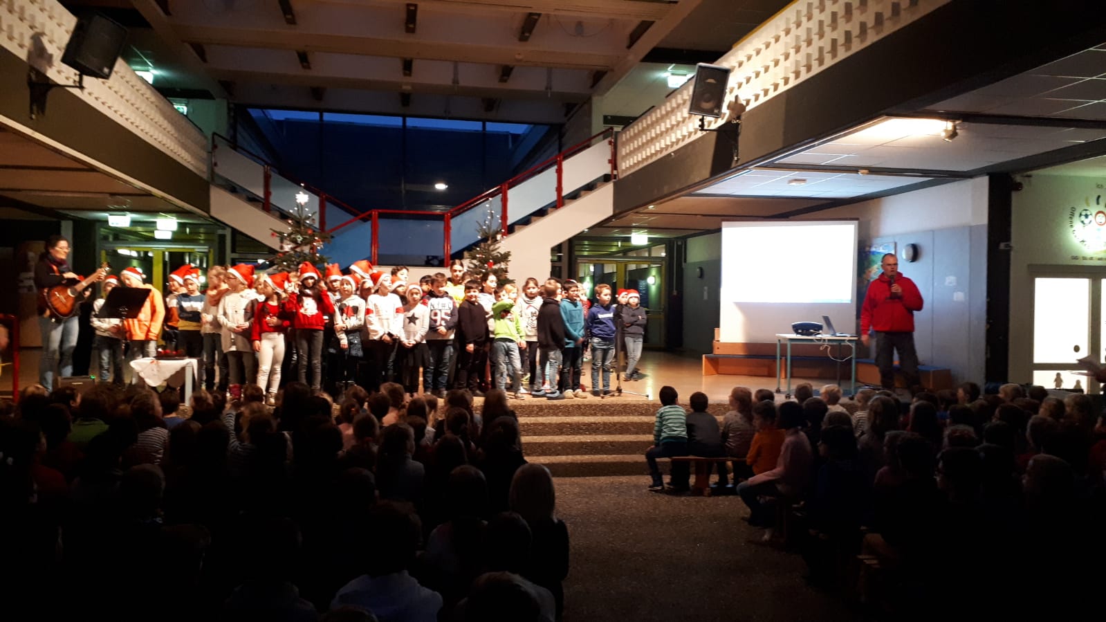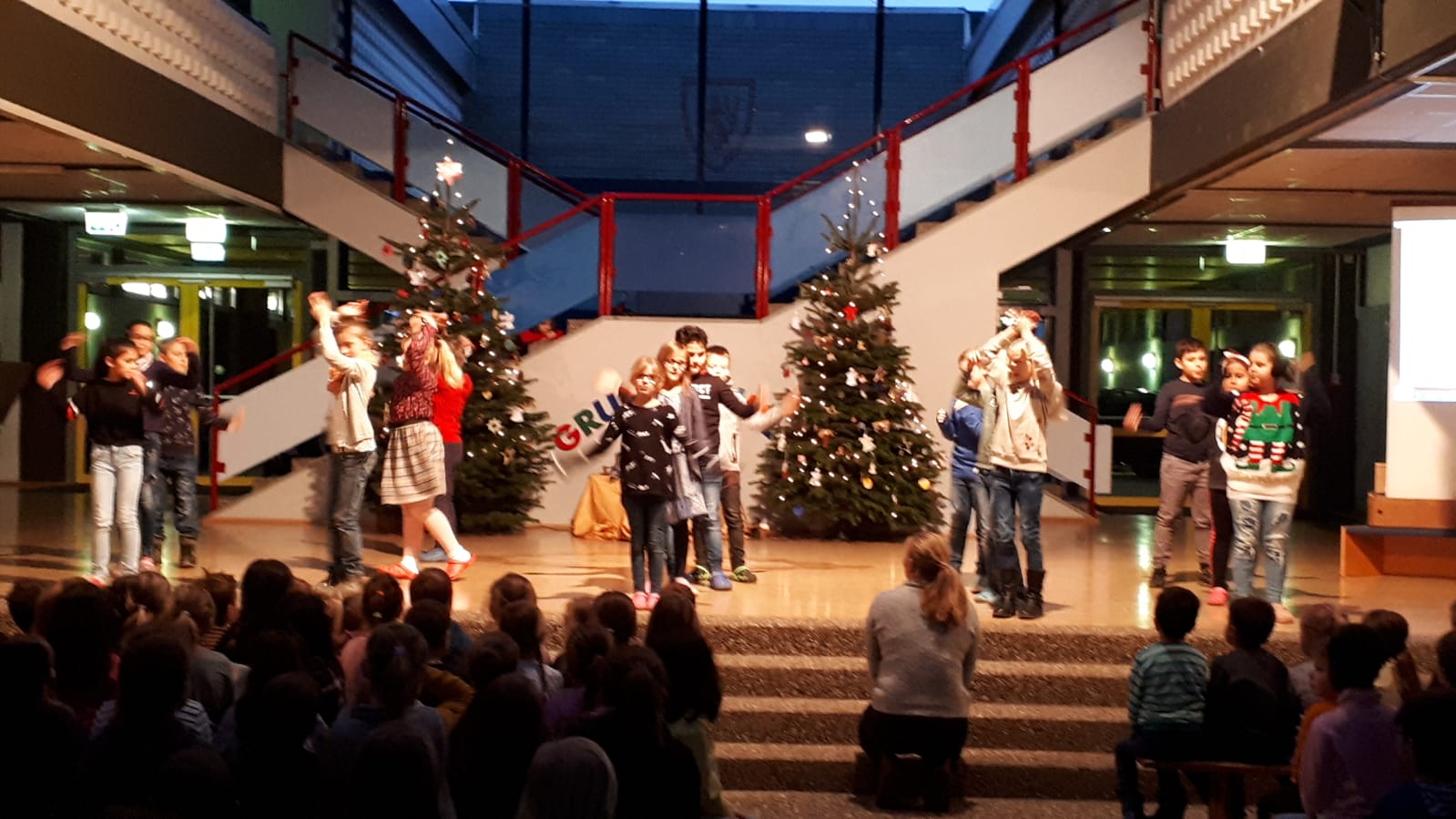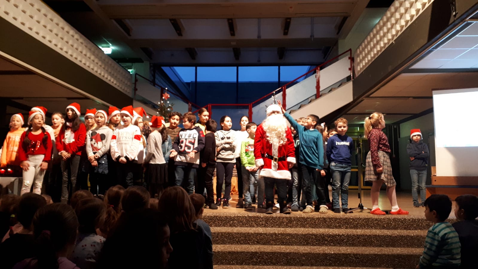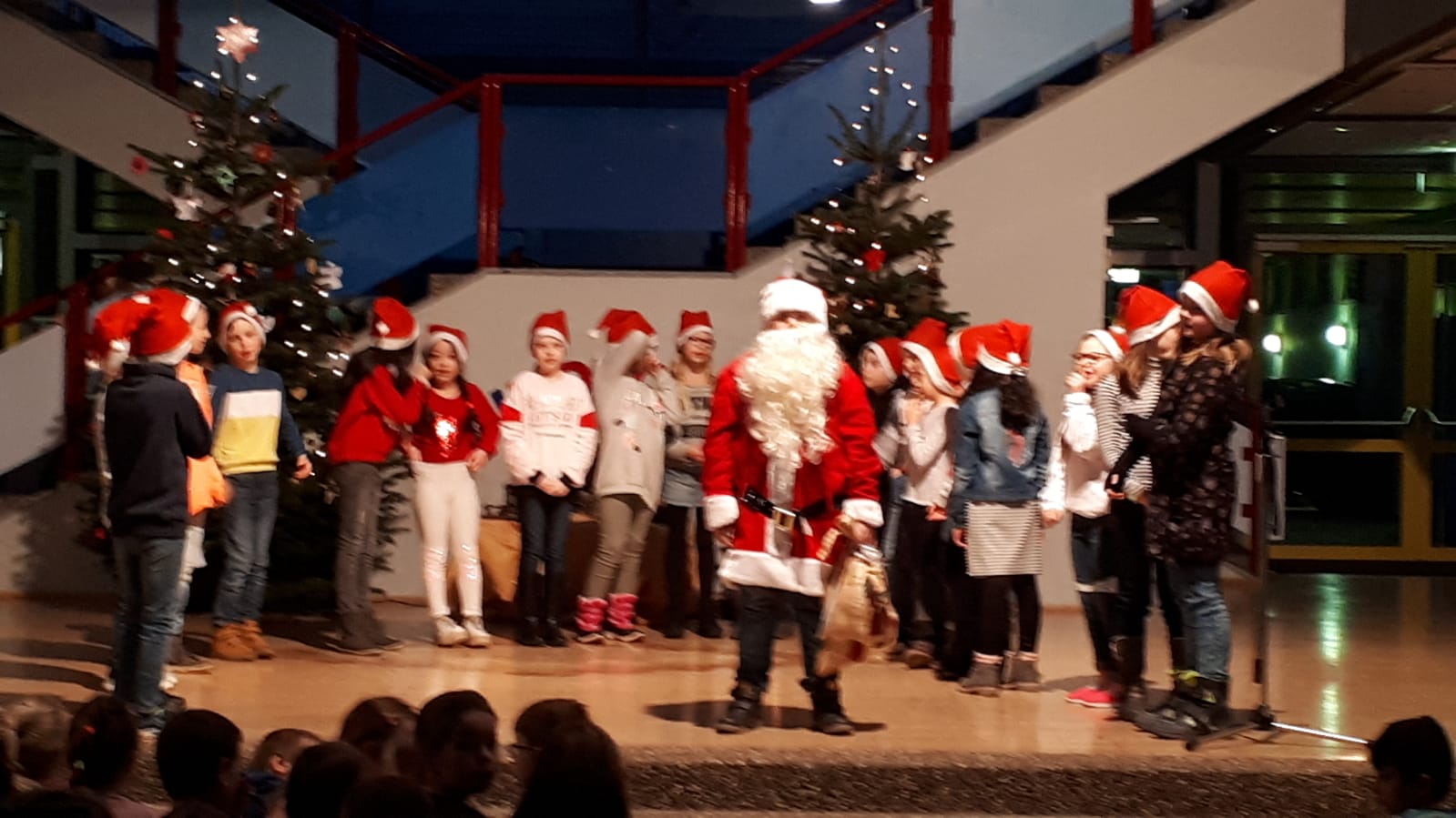 Diesmal kamen wir in der Aula zusammen, um die Klassiker der Vorweihnachtszeit zu singen, dem Läuten der Glocken zu lauschen und zu erfahren, was denn der Nikolaus das ganze Jahr über so macht.