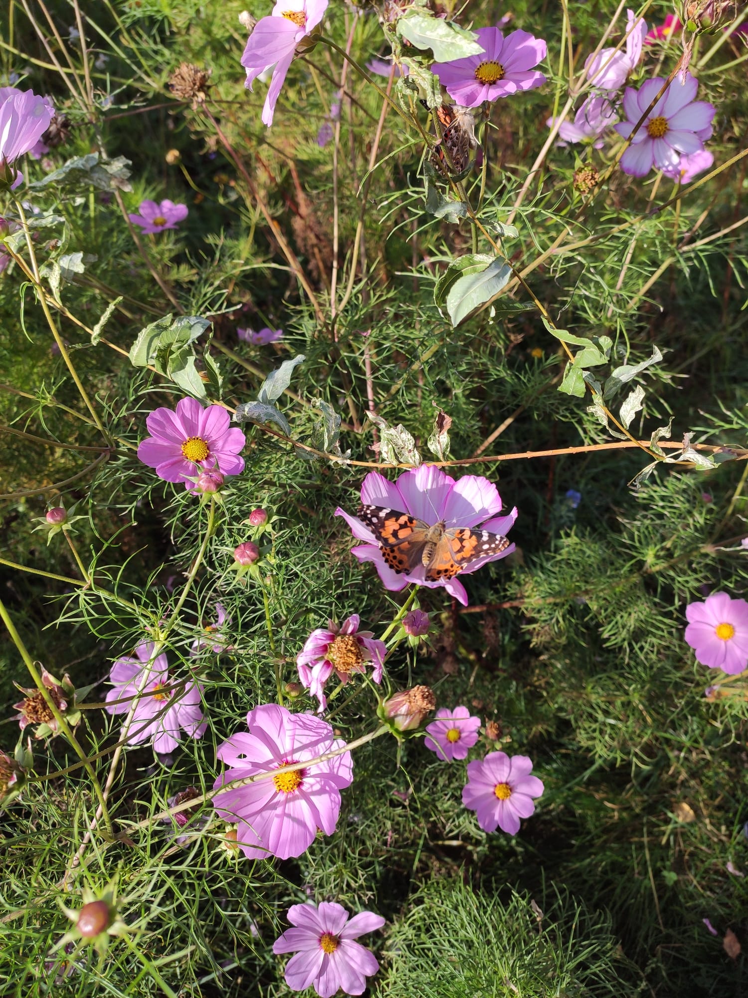 Die Klasse 2a hat heute auf einer Insektenwiese in Radevormwald 4 Distelfalter frei gelassen. Die Kinder haben in der Klasse die Raupen beim Fressen, Verpuppen und im Kokon beobachtet. Auch das Schlüpfen aus der Hülle war sehr interessant zu verfolgen. Die Schmetterlinge haben dann Apfelstückchen und Orangen als Futter bekommen. Heute flogen sie dann in hellem Sonnenschein in die Freiheit.