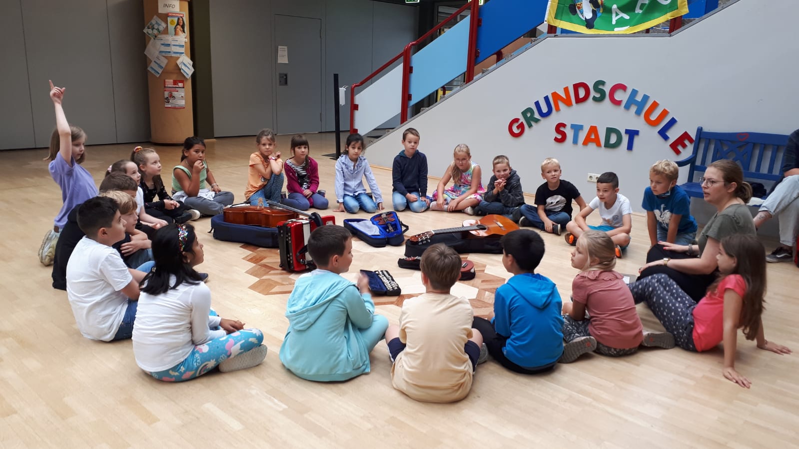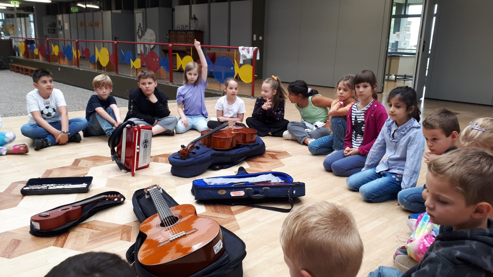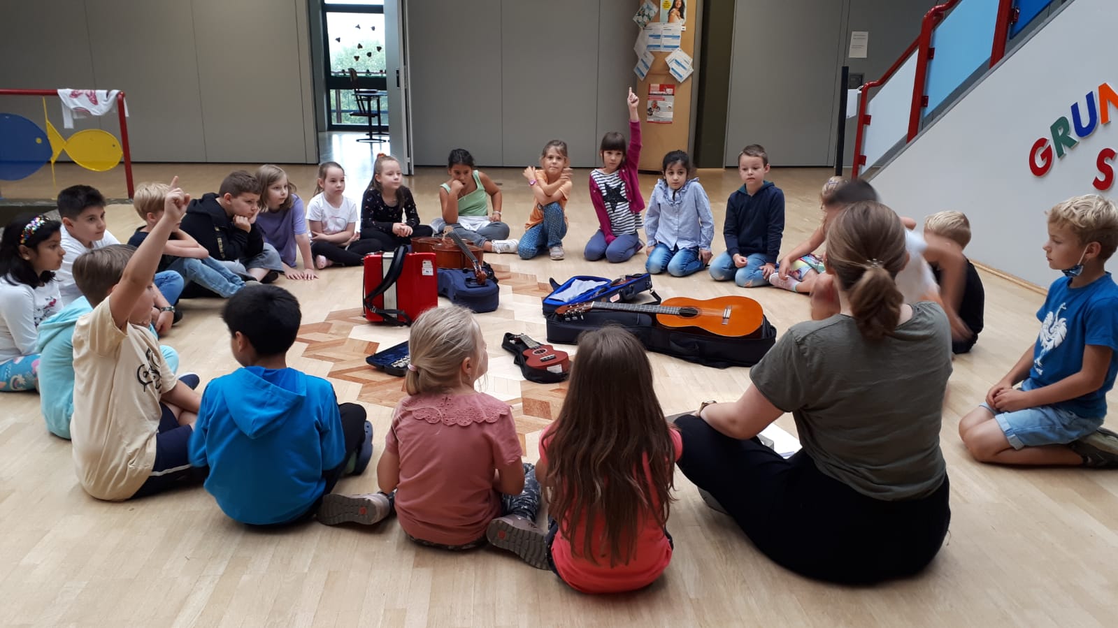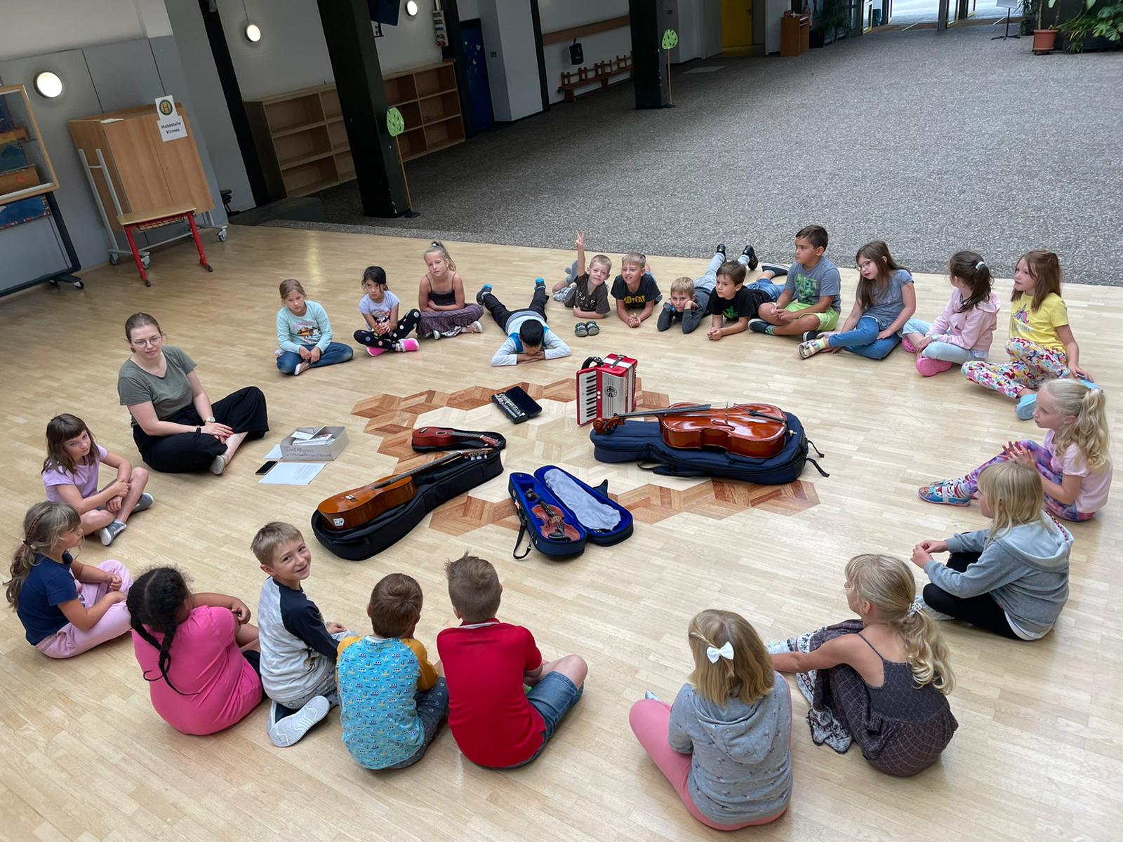 Frau Majorek von der Rader Musikschule war heute zu Besuch in unserer Schule und hat in den zweiten Schuljahren verschiedene Instrumente vorgestellt.