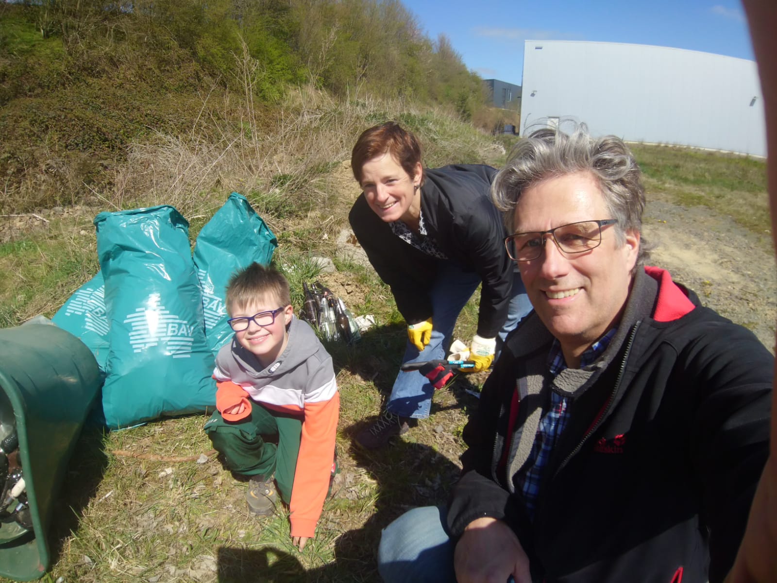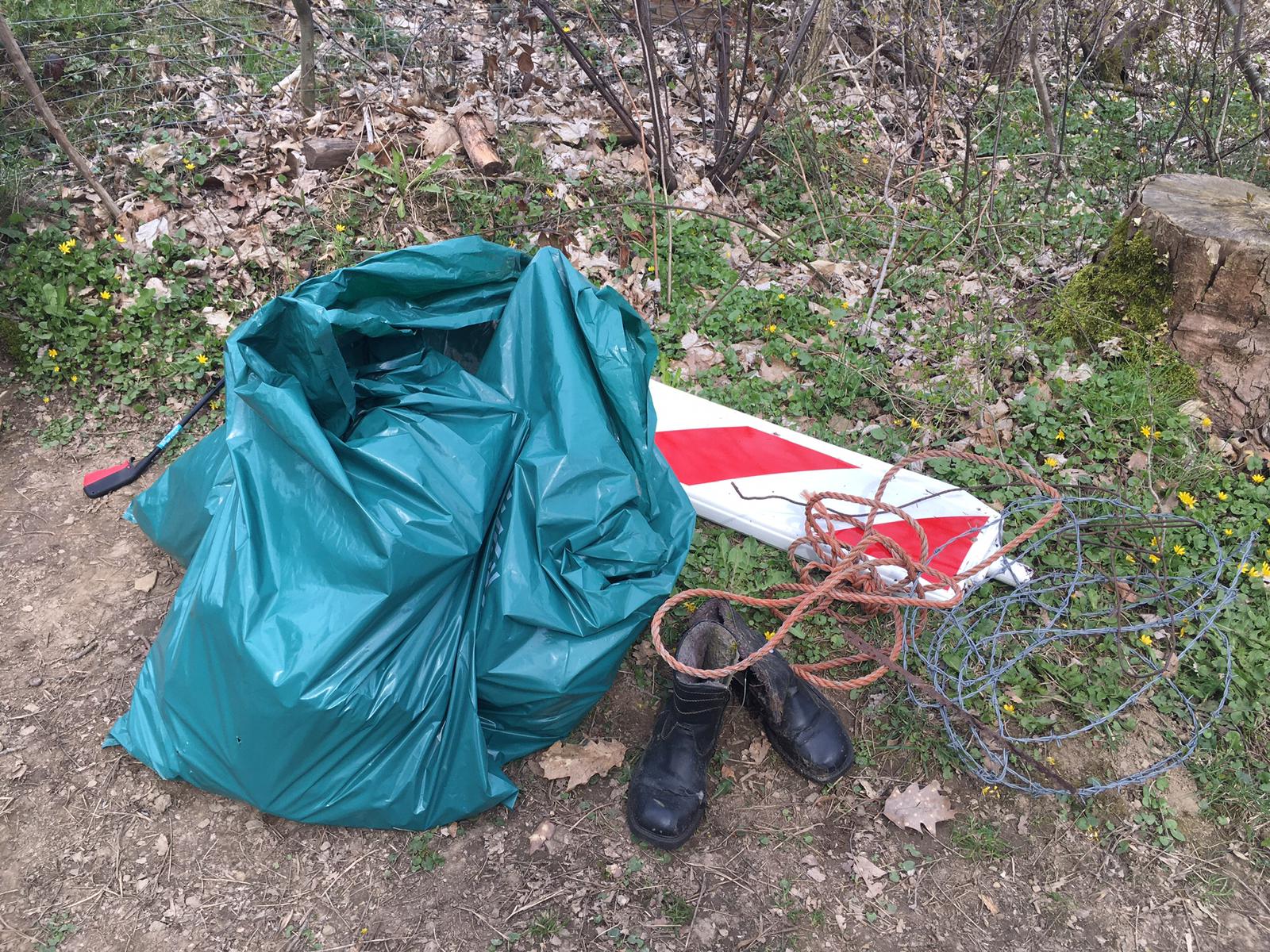 Unterwegs war auch Paul mit seiner Familie. Gemeinsam haben sie vor allem an der Wuppersperre gesammelt und sind an zwei Tagen 18 km zu Fuß unterwegs gewesen. Die lustigsten Müllstücke waren ein Plastiktisch, ein Kinderschuh und ein Schlauch, der im Gebüsch erst wie eine Schlange aussah.