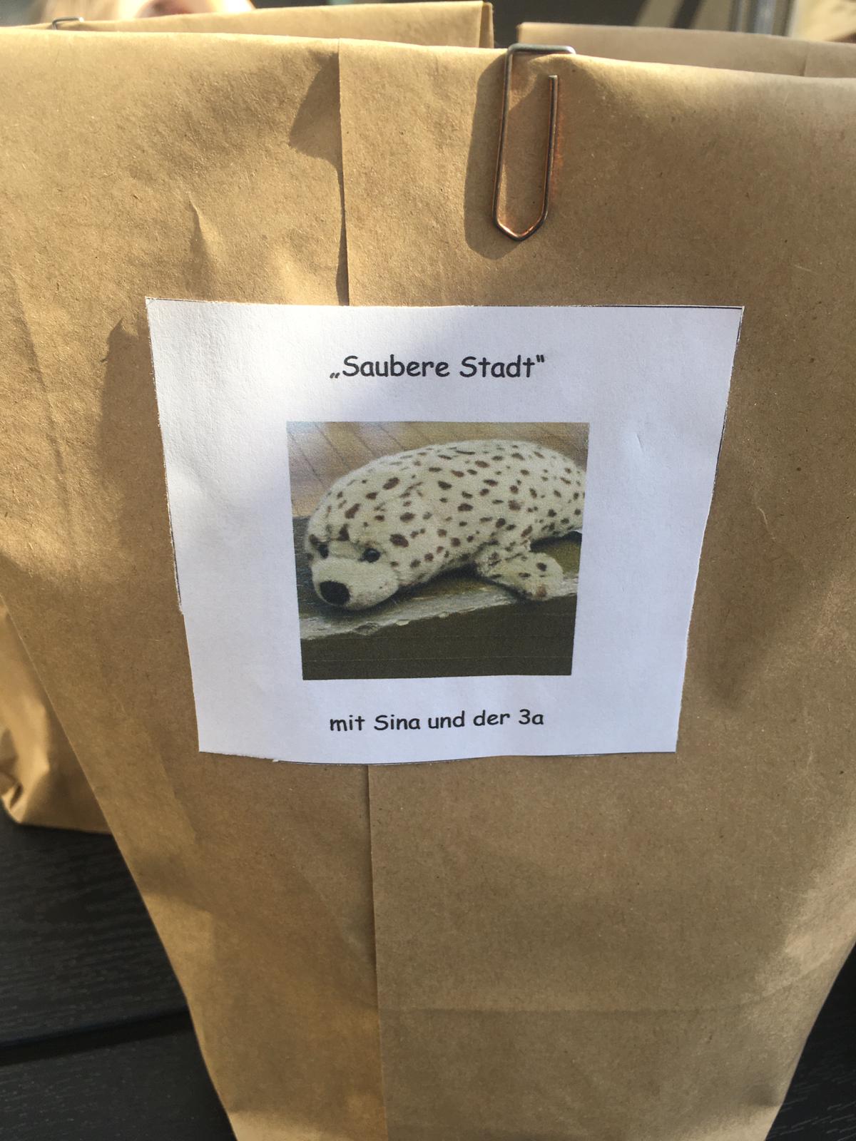 Die Klasse 3A hat trotz Corona ein tolles Klassenprojekt durchgeführt. Denn wir haben bei der Aktion „Saubere Stadt“ mitgemacht! Emma und Max haben mit ihren Mamas alles organisiert. Sie haben allen Müllsammlern Säcke, Zangen, Handschuhe und eine kleine Überraschung zur Stärkung zu Hause vorbeigebracht. Und dann konnte es auch losgehen: