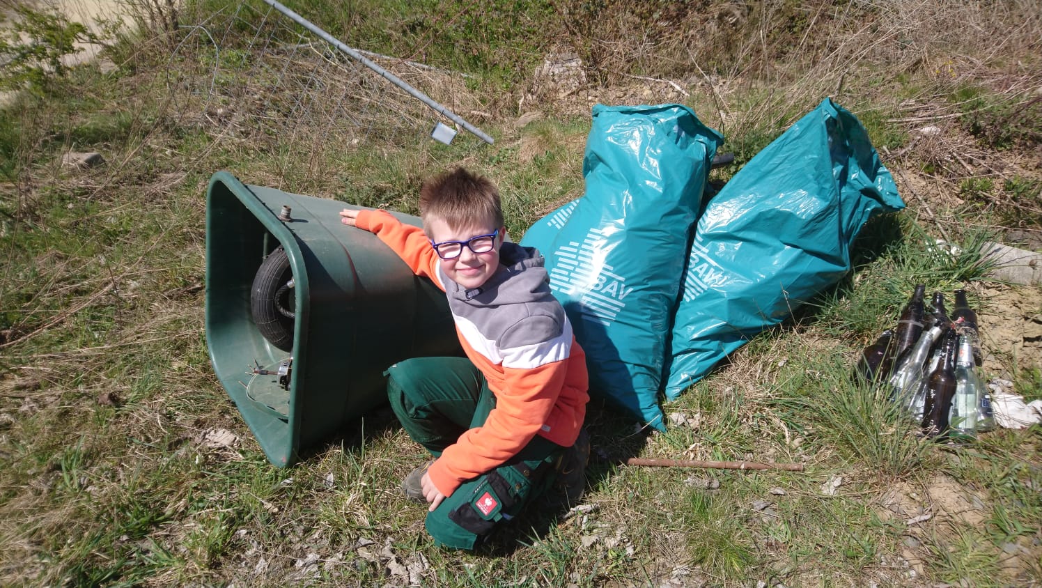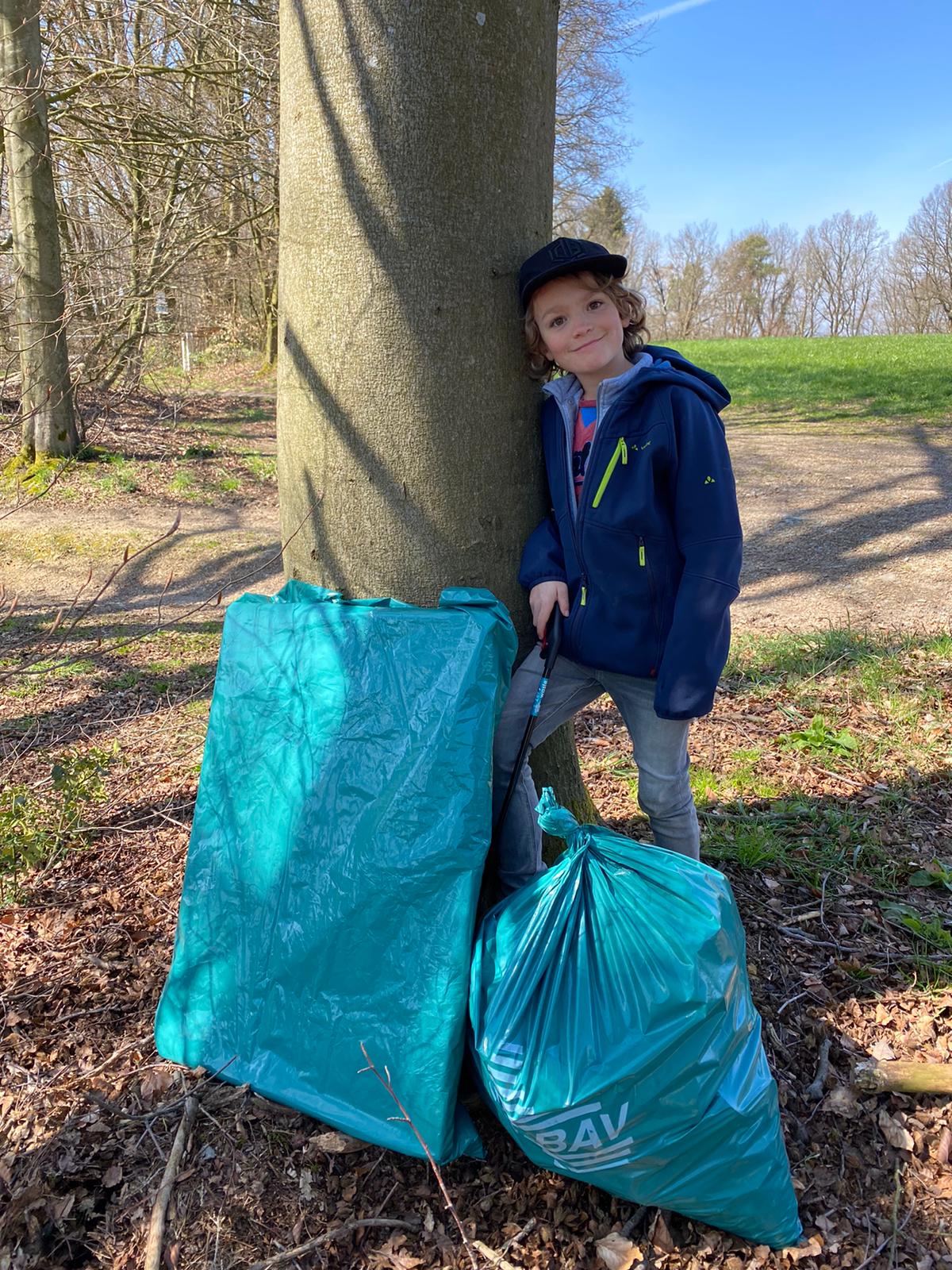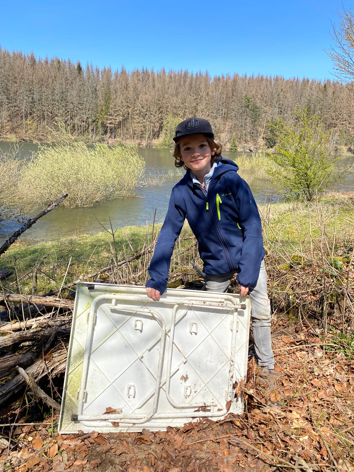 Jakob hat mit seinen Eltern auch Müll gesammelt und am Ende drei Müllsäcke gefüllt. Da war auch ein Reifen bei.