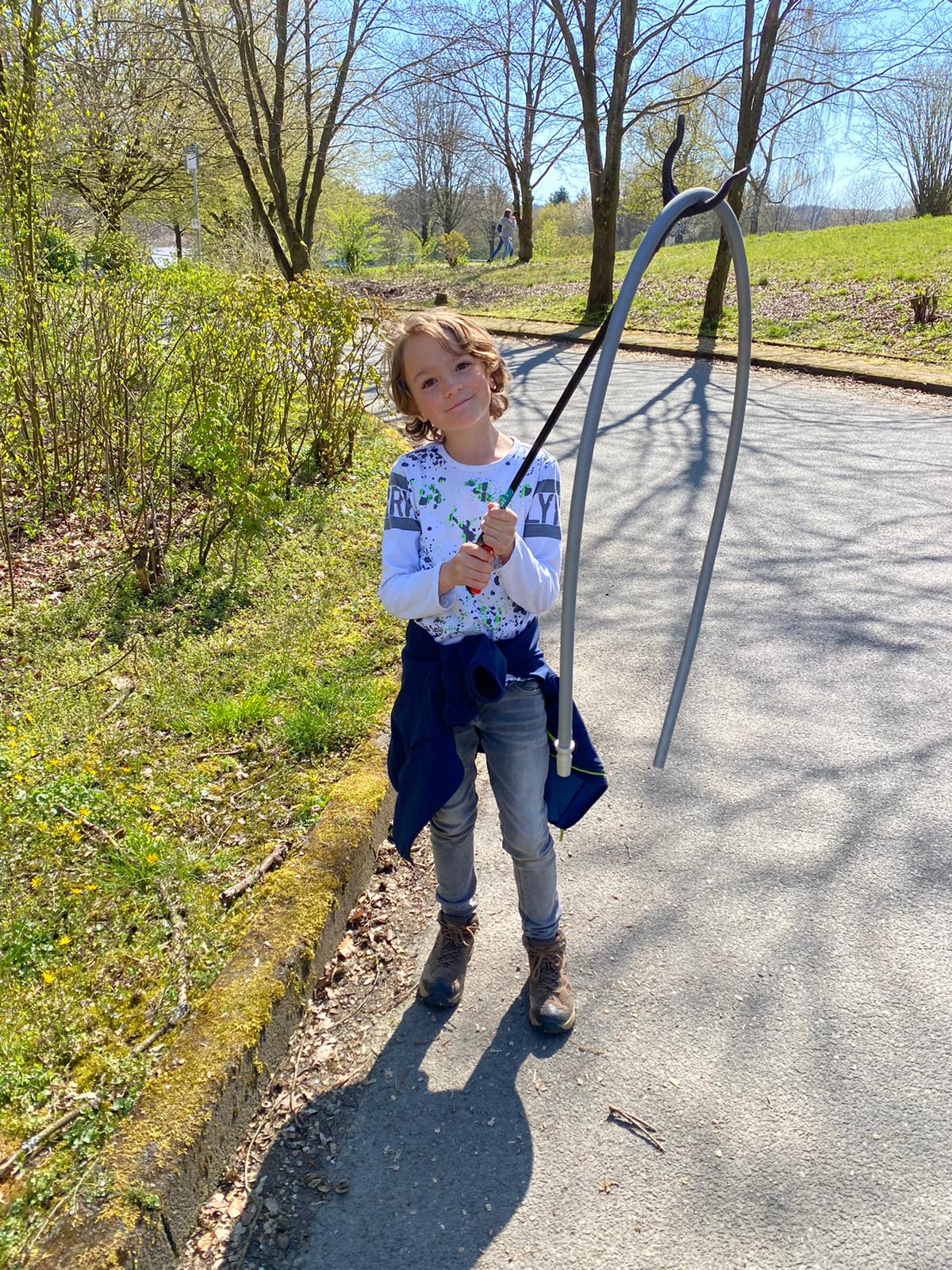 Auch Max war mit seiner Familie in der Zeitung und hat danach nochmal mit Greta an der Bever gesammelt. Sie haben drei Müllsäcke gefüllt. Dabei waren ein gefährlicher Stacheldraht, acht Schuhe und im Wasser haben sie eine Baustellenabsperrung entdeckt.