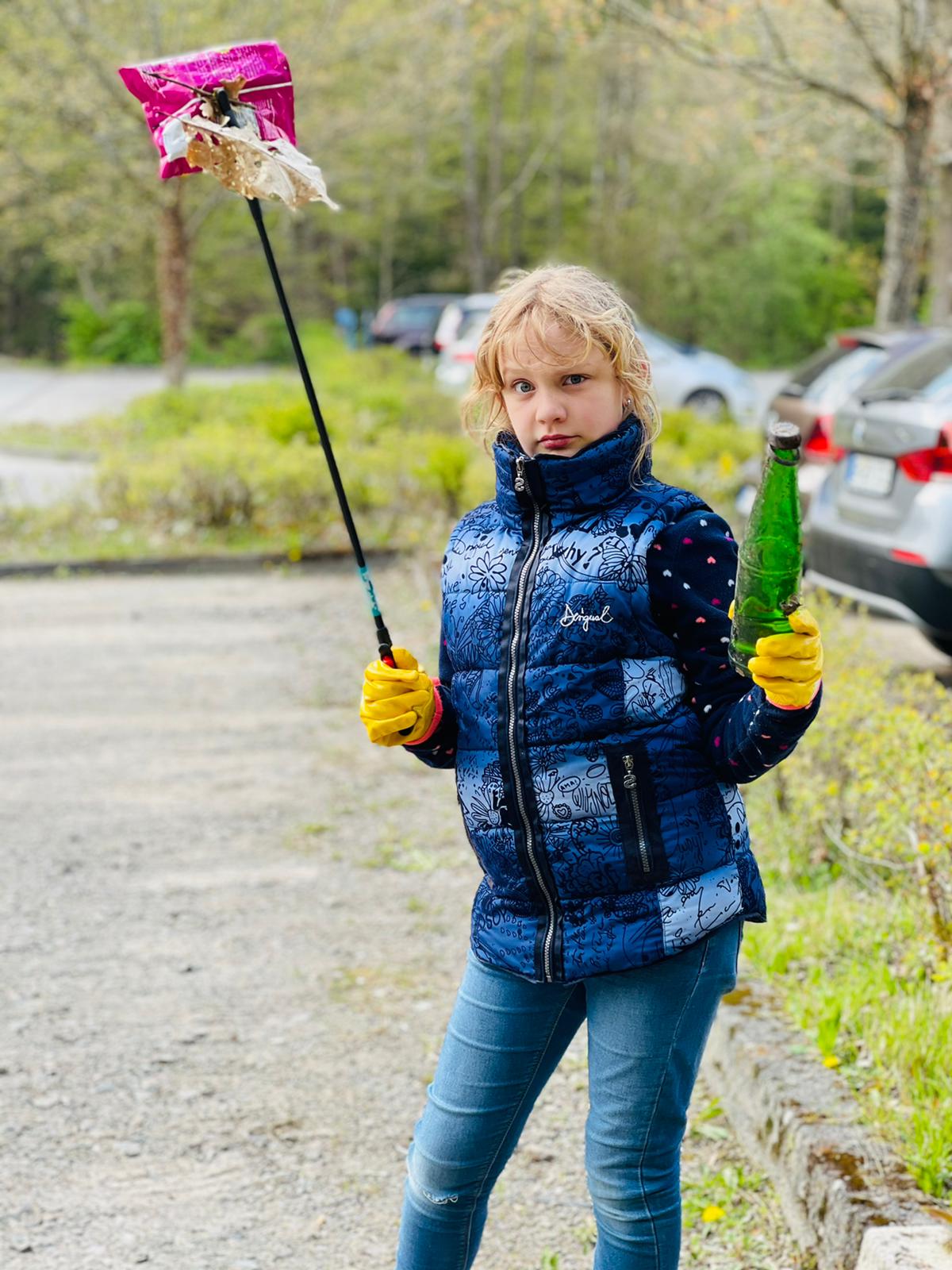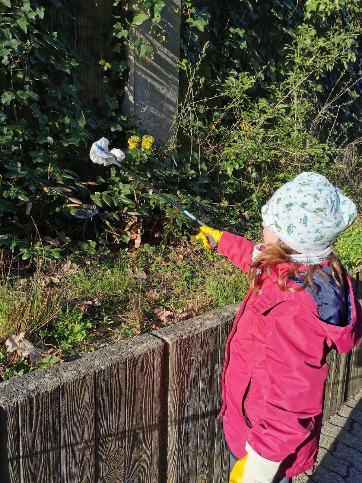 Bei Anna hat sogar die Oma mitgeholfen. Sie haben einen abgebrochenen Golfschläger und eine Lampe gefunden. Nach 1,5 Stunden hatte Anna einen Müllsack voll mit Glasflaschen, Masken und Pappbechern.