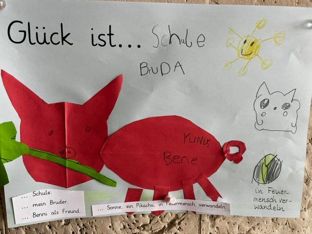 Am Mittwoch, den 5.11.2025 leuchte es bunt und erklang fröhlicher Gesang in unserer Aula. In der Aula kamen viele Freunde und Familien unserer Schulkinder zusammen zu diesem besonderen Tag. Eingestimmt wurden wir durch ein Schattenspiel und Musik der Klasse 3b. Danach zogen b egleitet von Posaunen und Trompeten die 1. und 2. Klassen fröhlich singend mit ihren schönen Laternen durch die Straßen. Vorne weg ritt St. Martin auf einem Pferd. Zum Anschluss gab es für alle noch einen Weckmann und Punsch. Danke an den Förderverein und alle Spenden!