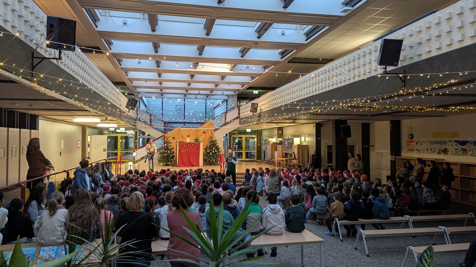 Eine der schönsten Traditionen an der GGS Stadt sind unsere Adventsfeiern an jedem Montag im Advent mit der gesamten Schule. Die erste Adventsfeier wurde organisiert von den 2. Klassen. Sie sangen für uns "Singen wir im Schein der Kerzen", leiteten uns zum gemeinsamen Gesang mit allen an, tanzten einen Weihnachtskanon und führten ein Theaterstück mit Stabfiguren von den Tieren in der Krippe auf. Unter dem Sternenzelt der Lichterketten und mit dem festlichen Weihnachtsbaum kam richtig Adventsstimmung auf. Danke lieber 2. Jahrgang! Es war toll! Nach dem 2. Advent durften alle Kinder und Mitarbeitenden der GGS den Vorführungen des 3. Jahrgangs lauschen und gemeinsam singen. Klaviersolo, Rap, Gedichter und Lieder versetzten uns alle in besinnliche Stimmung! Danke lieber 3. Jahrgang! Die letzte Adventsfeier wurde vom 4. Jahrgang gestaltet. Wir haben zusammen gesungen, ein Gedicht von einem Schneemann gehört, einen Ohrwurm vom schönen Adventslied "Kommt, wir zünden Kerzen an" und einen Tanz zu einem modernen Song gesehen. Danke an den 4. Jahrgang für die schöne Feier! Anschließend wurde an den anderen Tagen in den Klassen gesungen, gebastelt, am Adventskranz gewichtelt, vorgelesen, gelesen, gerätselt und auch so mancher Keks genascht.